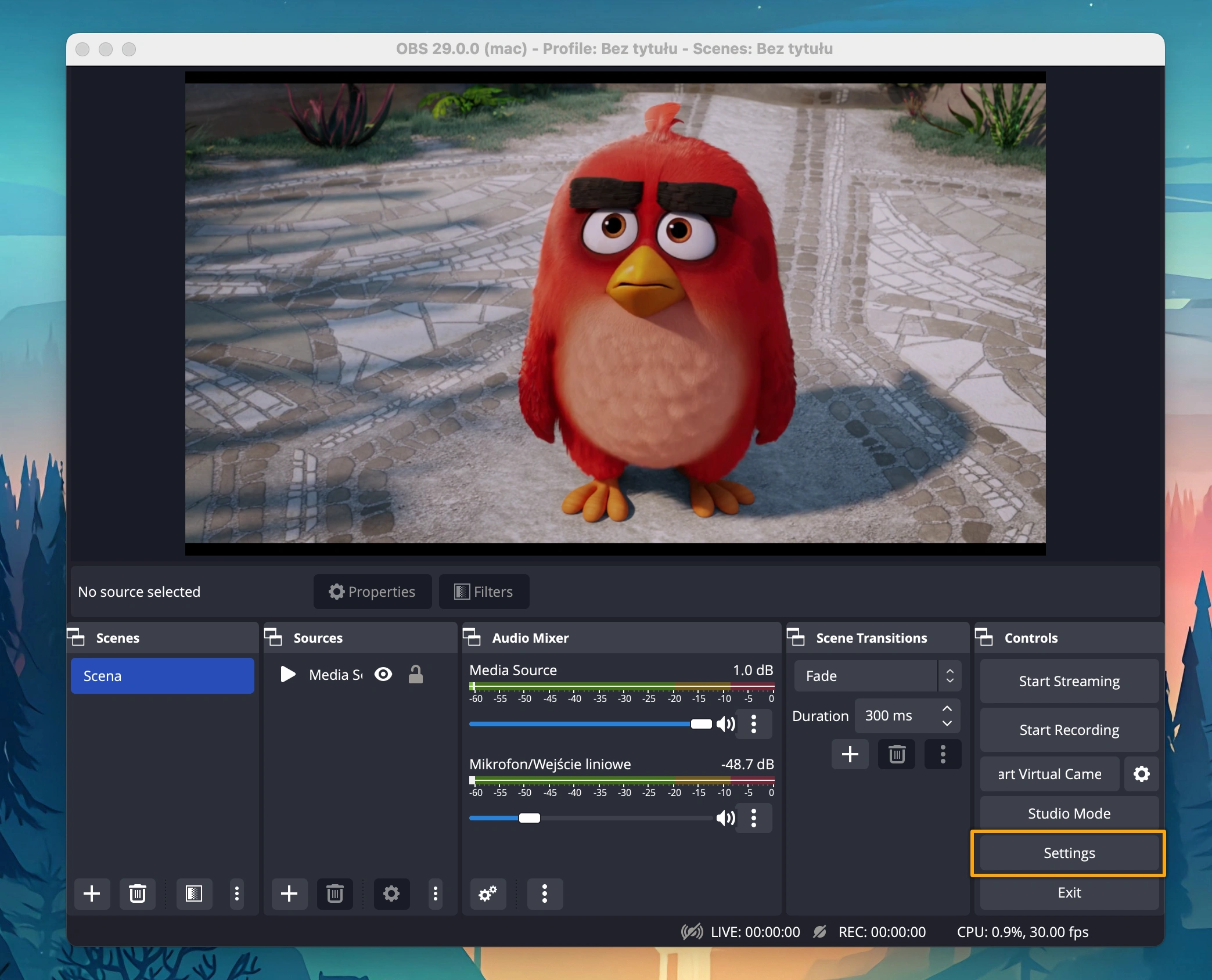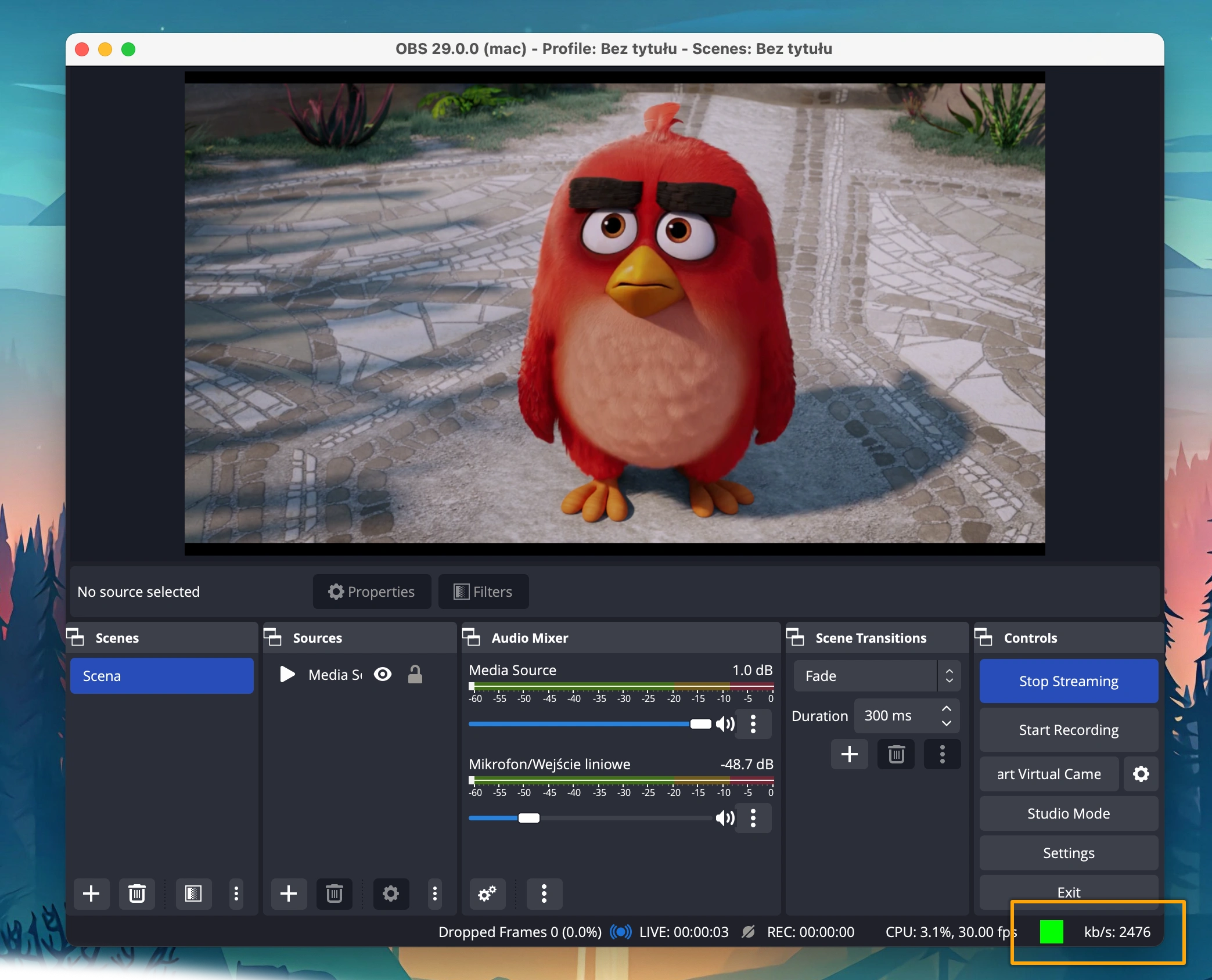 Now, simply confirm the changes by clicking the OK button, and in the main program window, you can start streaming by selecting the Start Streaming option. If everything is in order, a green square will light up in the bottom right corner.