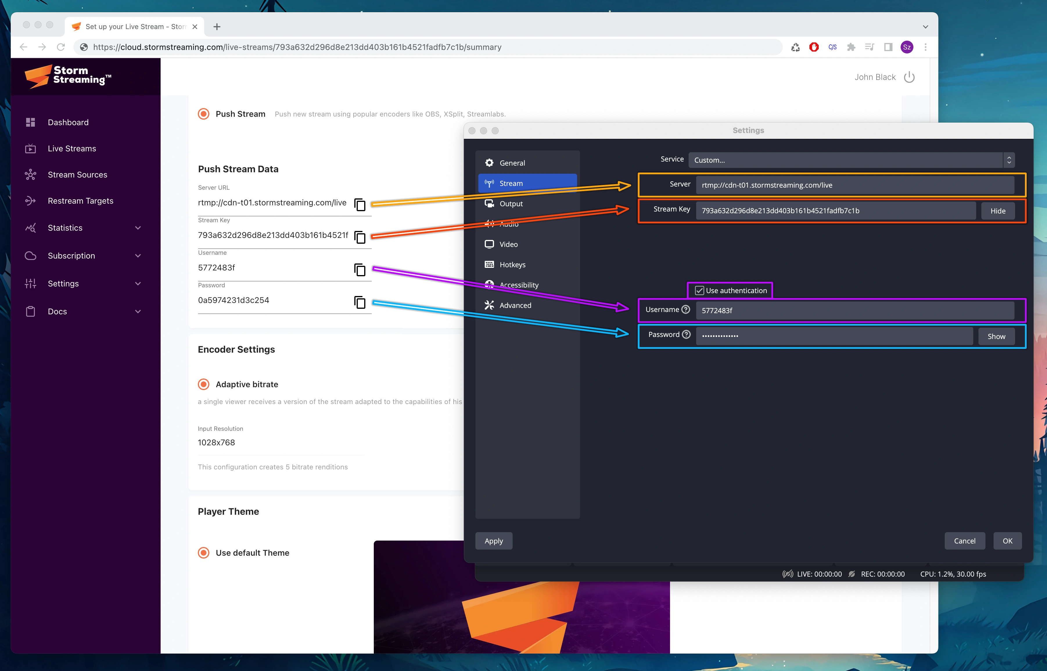 In this tutorial, we will show you how to use OpenBroadcast (OBS) to connect with the Storm Streaming Cloud service. OpenBroadcaster is exceptionally easy to use, while at the same time being a powerful streaming multitool.