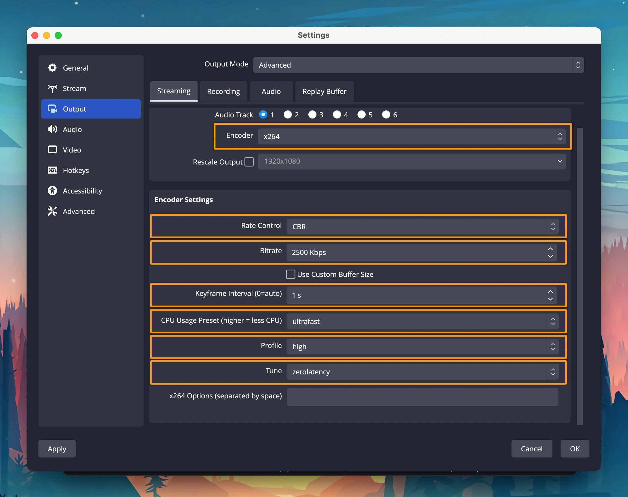 Choose the x264 encoder. It is recommended and well-tested. If you have an NVIDIA graphics card, you can try selecting the NVENC option.