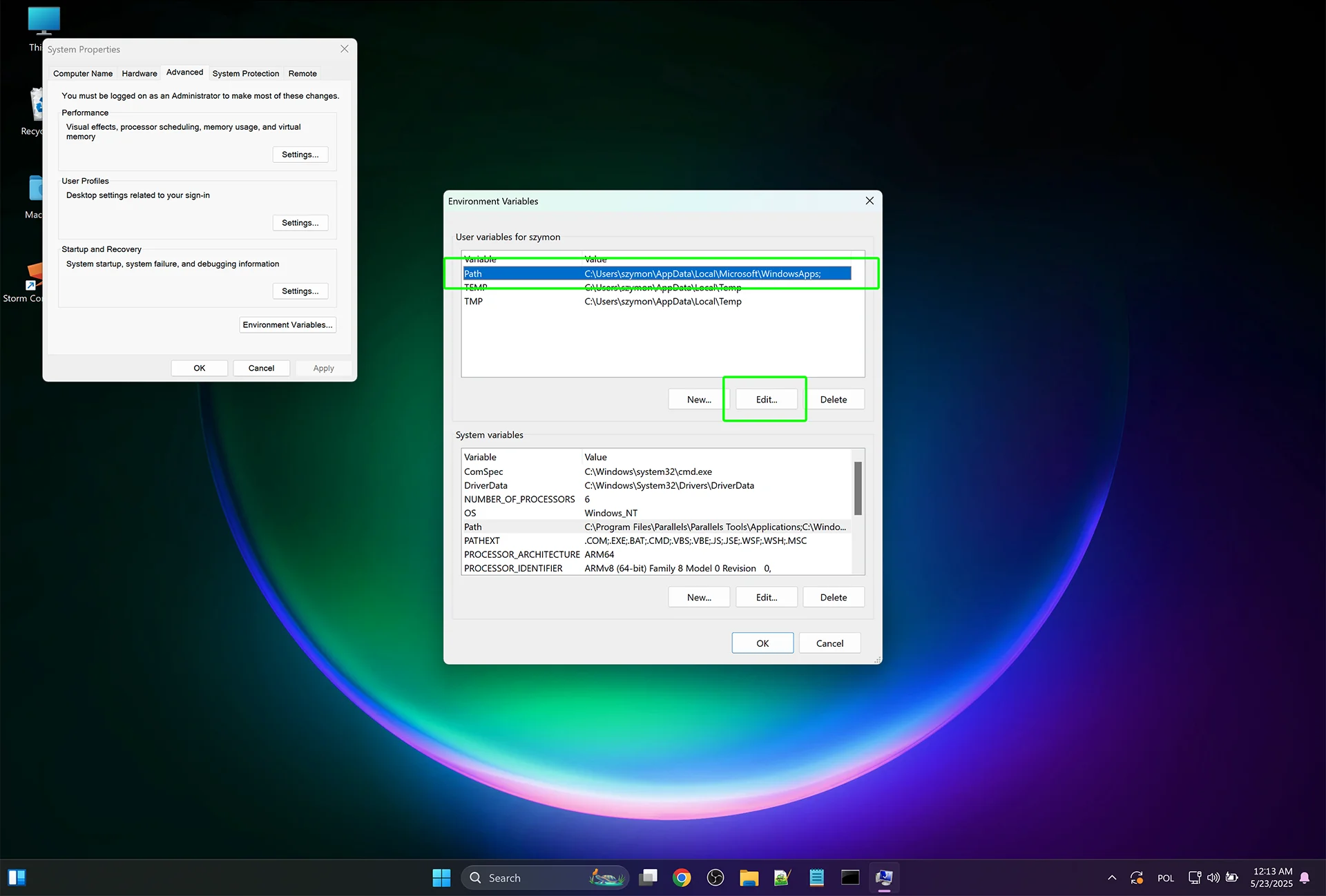 Find Path variable and click EditClick New and add the path to the bin folder, for example:
